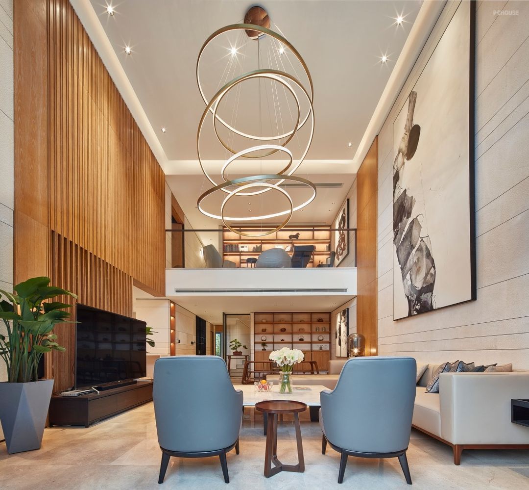 前言: 我从公元走来,带着千年的述说与爱意。世俗沧桑变化,我闻到茶香穿越,风雨凋零,我看见星河璀璨,我流转了人间不知数年,在水墨间跳跃。 我以为世间一切都是风,与时间与指尖穿流而过,直到我遇见了你,我们勾勒线条,以水墨为画,挡风雨于外,那是一种神奇的力量。 那种力量是爱,构筑了繁星点点;构筑了一个空间,我称它为家。 这是一个287平米的复式楼,房子本身结构还不错,户型方正,通风采光很好,卧室之间的距离刚刚好,有一定的隐私空间,但也不缺失了互动性。关于房间主人,男主人是个温文尔雅的人,对于妻子和父母孩子的爱,深深地让我们触动,家人间的尊重与关怀才会铸就这样一个温馨的家吧。 本案风格为新中式,因为房子尺寸足够,生活起居区域,以开敞半开敞为方式,通透大气,以木色、米色为基本色调,造型、摆件等上面采用一些中式手法,显得整体空间赏心悦目,并充满韵味。