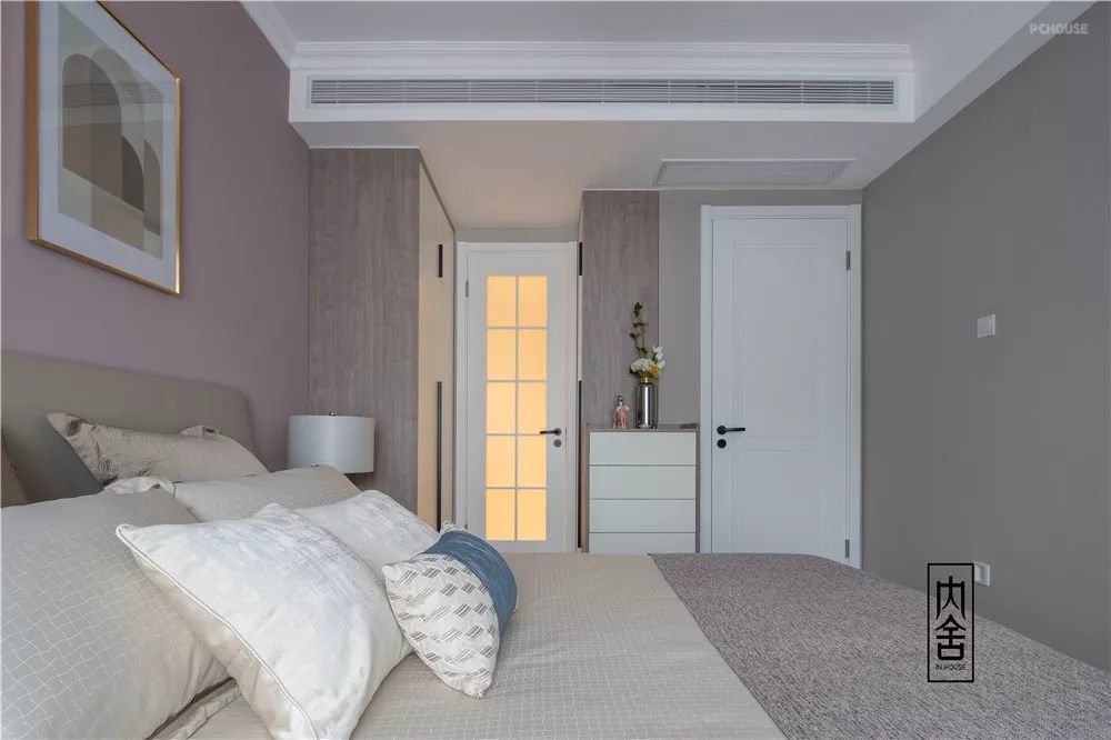 主卧背景墙选用的粉色,整体风格轻松舒适,很符合女主人的生活态度。