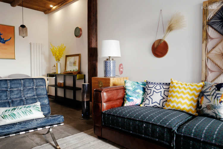 沙发靠垫则选色明亮有动感,调和了整间客厅的复古气息,更符合孩子色彩斑斓的天性。