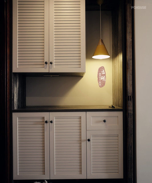 一进门正对的是厨房,特意设计了两扇老式的格子木移门作为厨房门,平时合着就可以漂亮的把厨房藏起来。