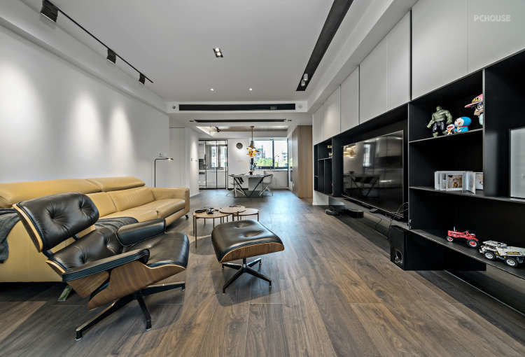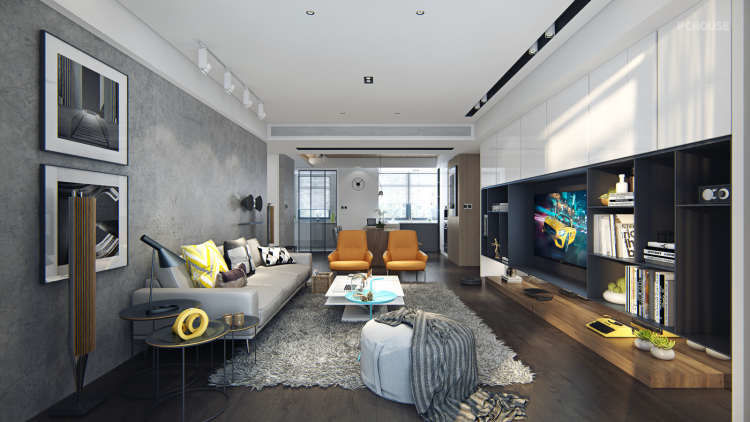 沙发背后打算磐多磨上墙,后期女业主怀孕担心环保性被cancel。电视墙部分兼储物,我做过大量类似设计,不多做赘述,其中电视柜上方有可以把网络设备藏足的空间,我修改弱电箱位置,强电箱则完全没有改动,如果磐多磨继续实施,应该效果更有趣一些,不过家庭装修总是会有这样那样的中途变故,已经变成习惯。