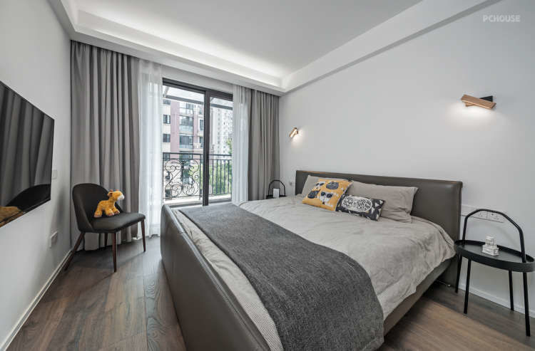 墙角的宜家小沙发,日常就是换夜衣服的堆放点,浅灰色窗帘搭配细带纹路的纱帘经典配置,简单宁静不过度渲染氛围感。
