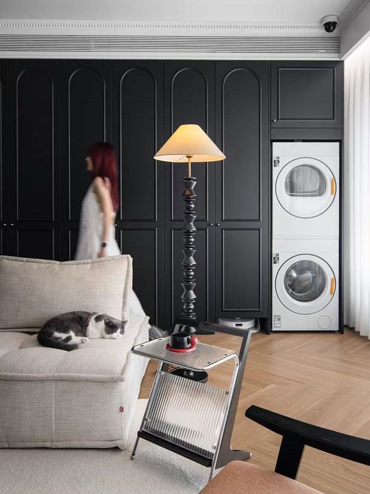 在厨厅和客厅局域加了通透型推拉门,解决了厨房的油烟问题,又不影响整个空间的通透性。