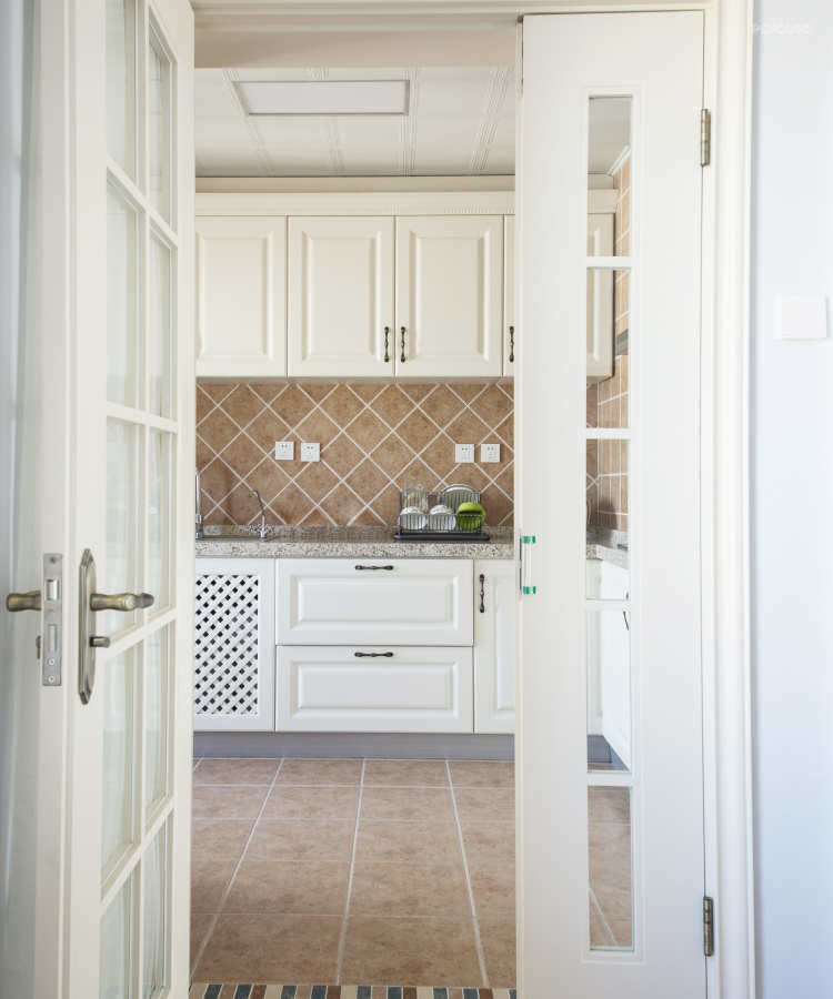 美式厨房讲究实用性,橱柜多采用网格门,多格门,铜条玻璃门进行装饰。赫美网格门橱柜,简约但又不失美式的奢华。尽管有些人喜欢开放式的厨房,但厨房安一个门,以后你不会后悔的。