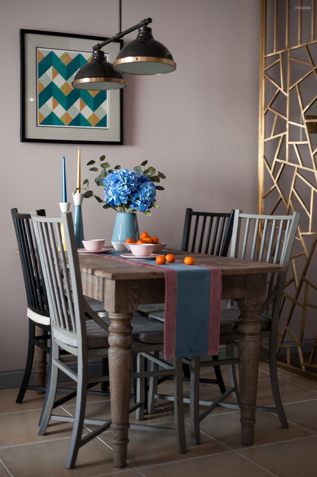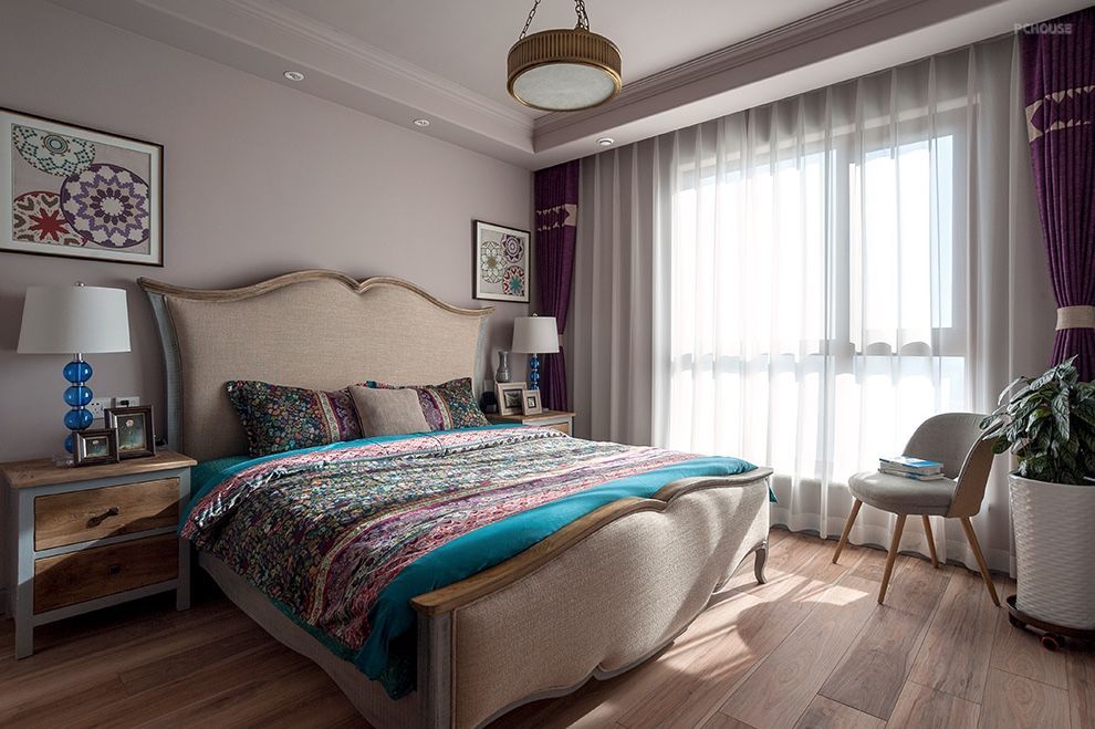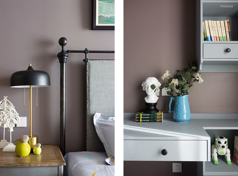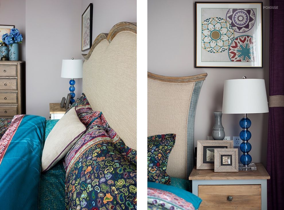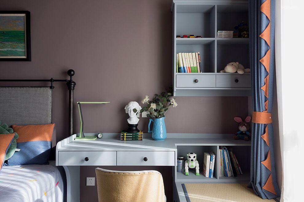 法式复古的情怀是属于浪漫、优雅和精致的,常常更易获得感性女业主的青睐。然而在卸掉青春浮躁,更懂生活之后,先生也开始钟情于这个风格。以紫色、蓝色为主,点缀灰粉、橙等鲜明色彩,让人忍不住想起经典的法式甜点马卡龙,不止颜值超高,并且甘甜、美好。在软装上,同样别具匠心,通过复古的家具的曲线,柔化空间;并利用雅致的装饰品、精美的花艺,增添整个空间优雅浪漫的气息。