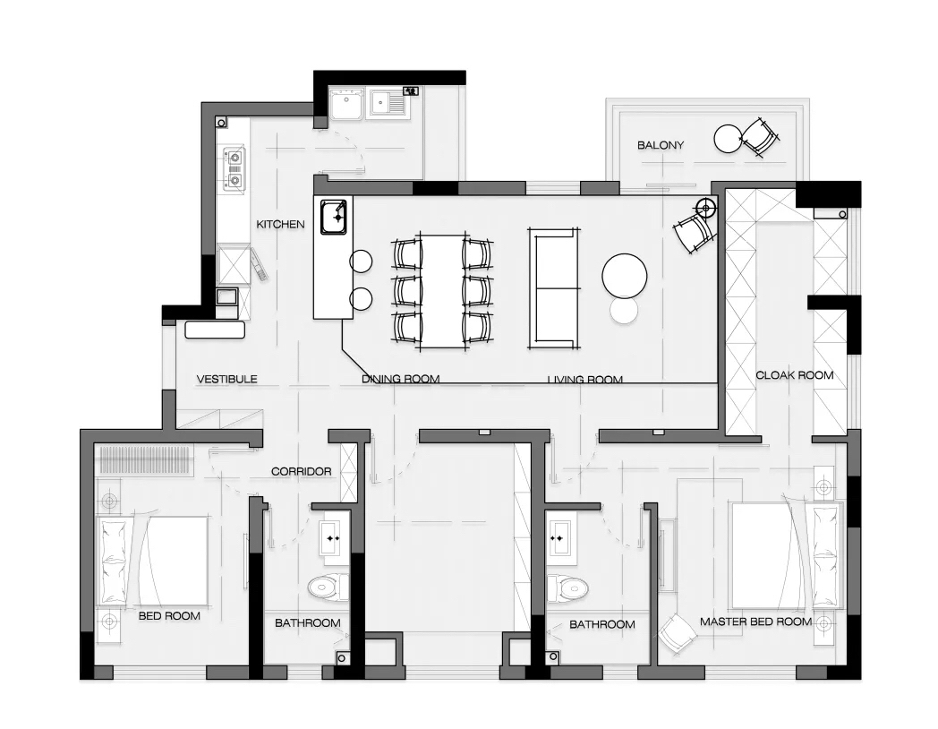 前言: 距离上一套北欧风装完,不足两年,又开始了新的装旅,年轻,就是要“造作”。 清淡的家居感觉似乎看着少了点激情,那么这套来点“重口味”,年轻,就是要“造作”。 当遇到一个有品位,有审美,果断不纠结的性格,应该是每个设计师的幸运,一起玩设计,是件很酷的事儿。 中规中矩的四室两厅户型,改成了三室一厅,足够满足功能需求,其余的次要空间就以补充首要空间为前提。