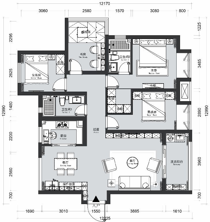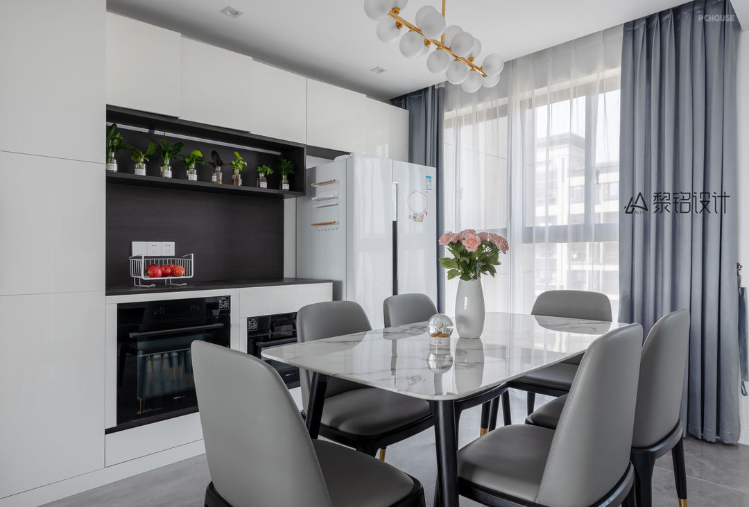 原先开发商设计的北阳台被设计师充分利用,纳入餐厅空间。