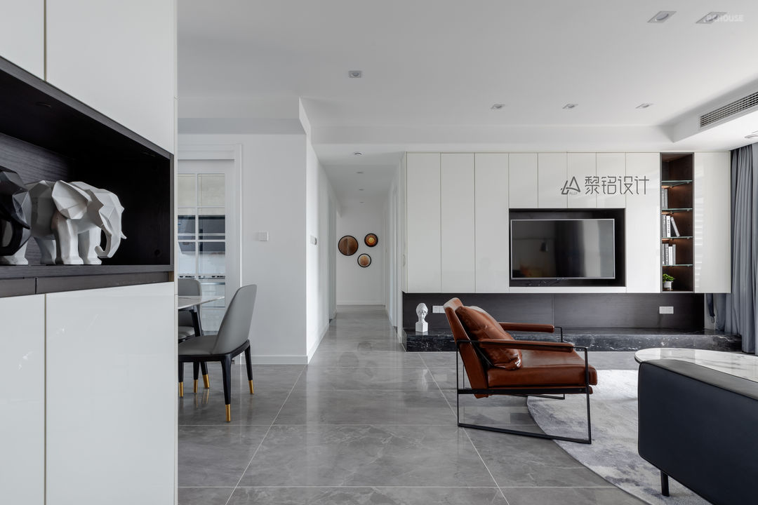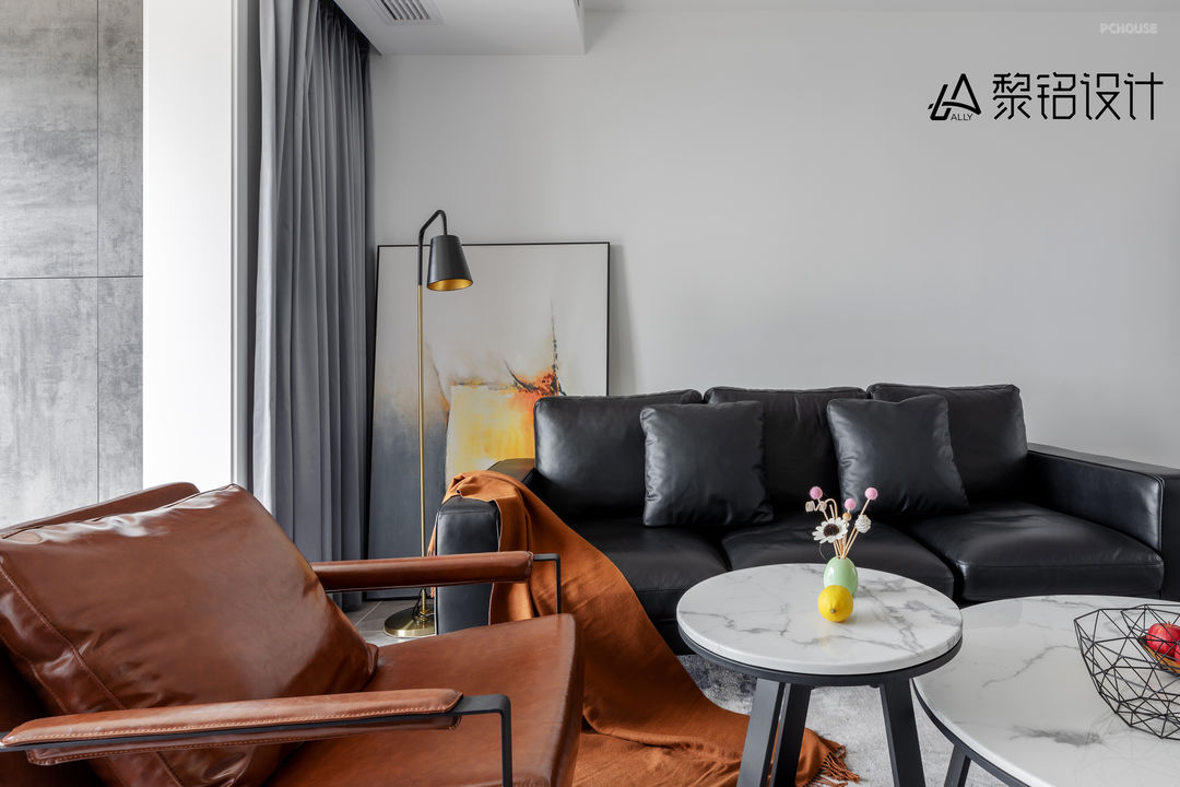 过道组合壁饰个性炫酷,与橙色单椅遥相呼应。