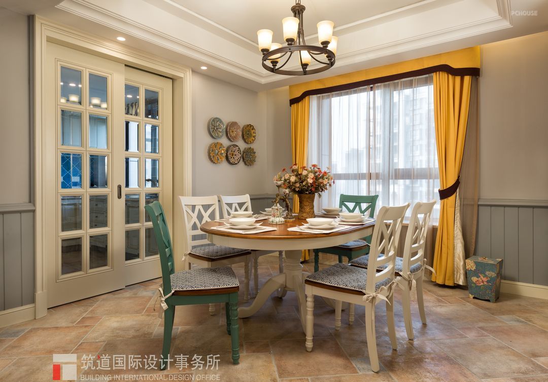 餐厅和厨房区域选用了浪漫的白色实木作为家具的主材料。