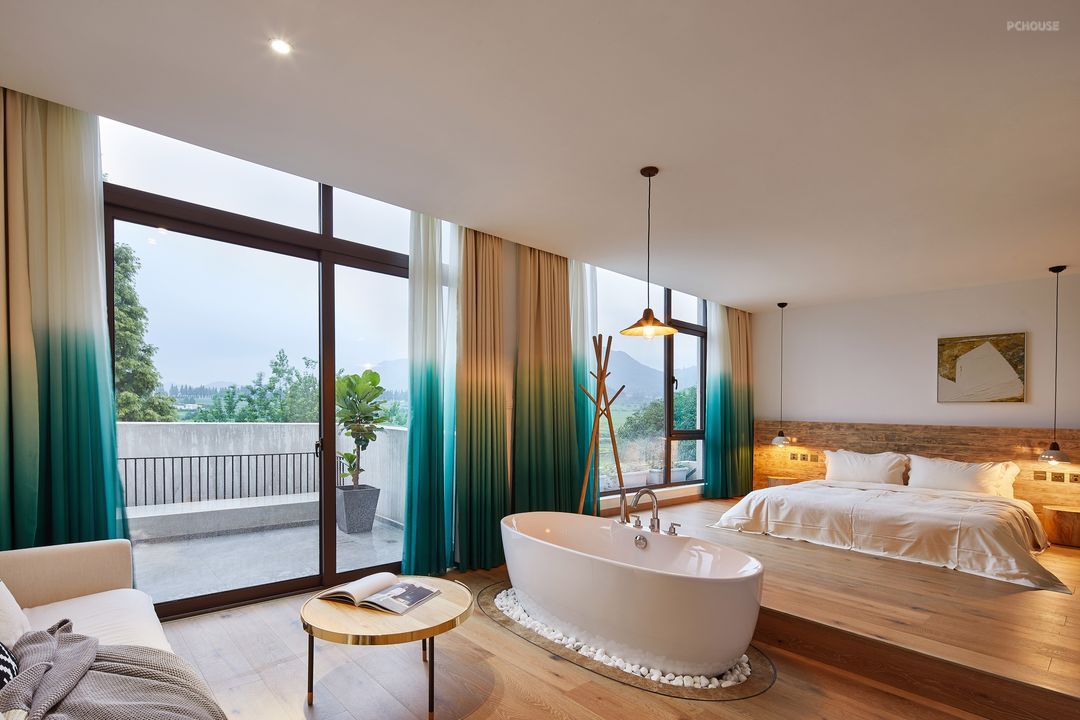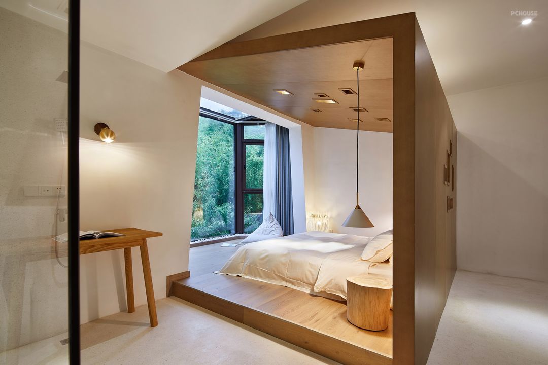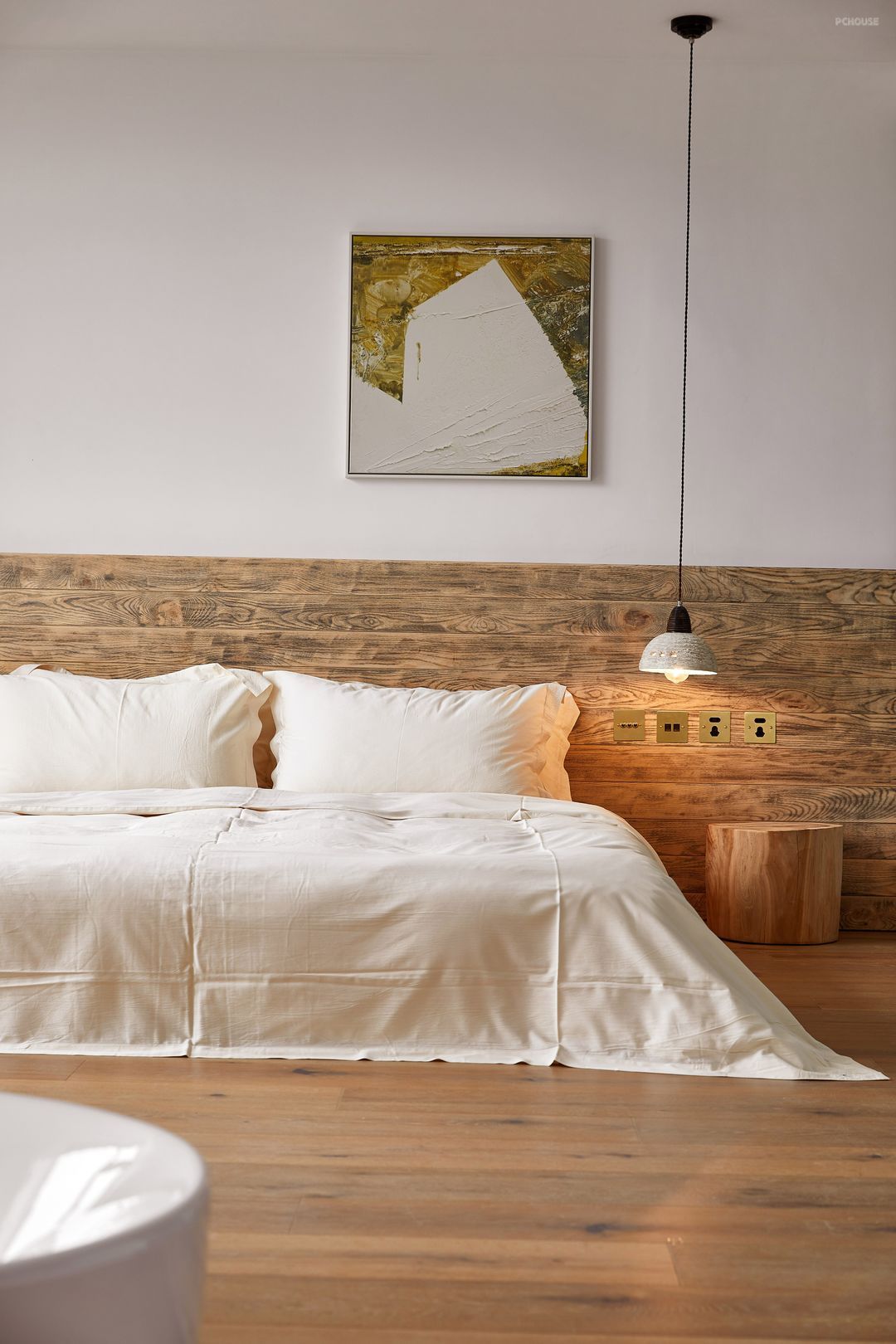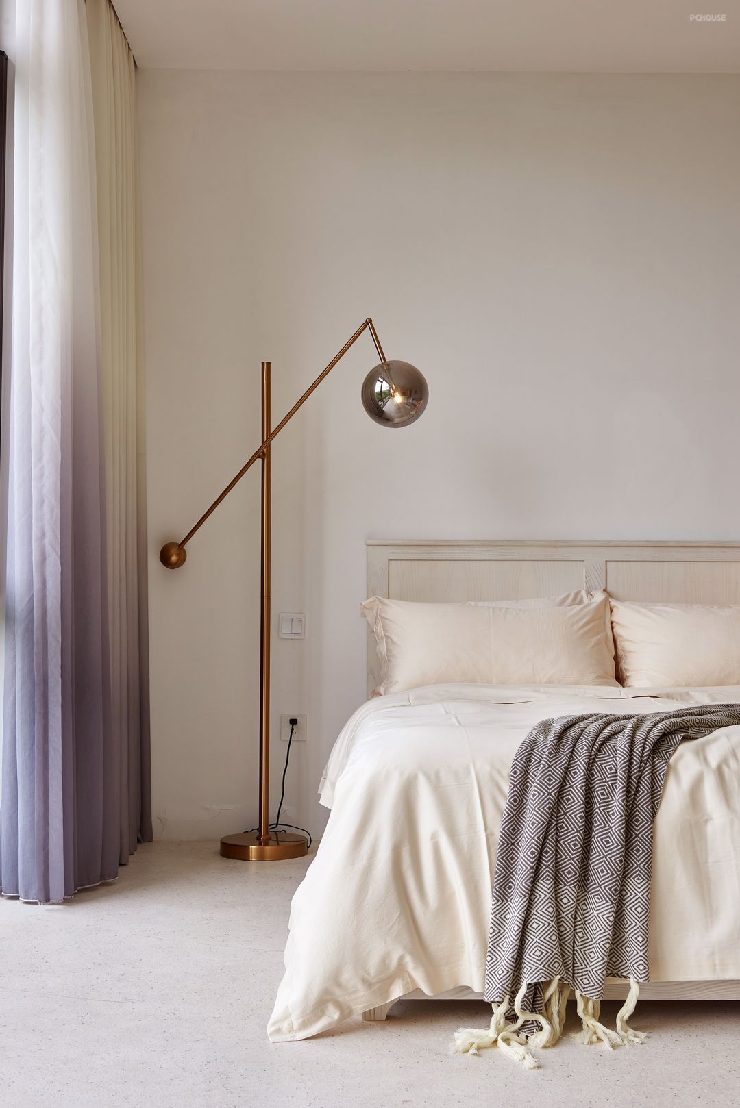 房间的设计将白墙与木质材料相结合,将空间变得自然纯粹,配以现代化简约的装饰,以黄铜材质家具为点缀,映出低调与雅奢,提升室内的整体气质。