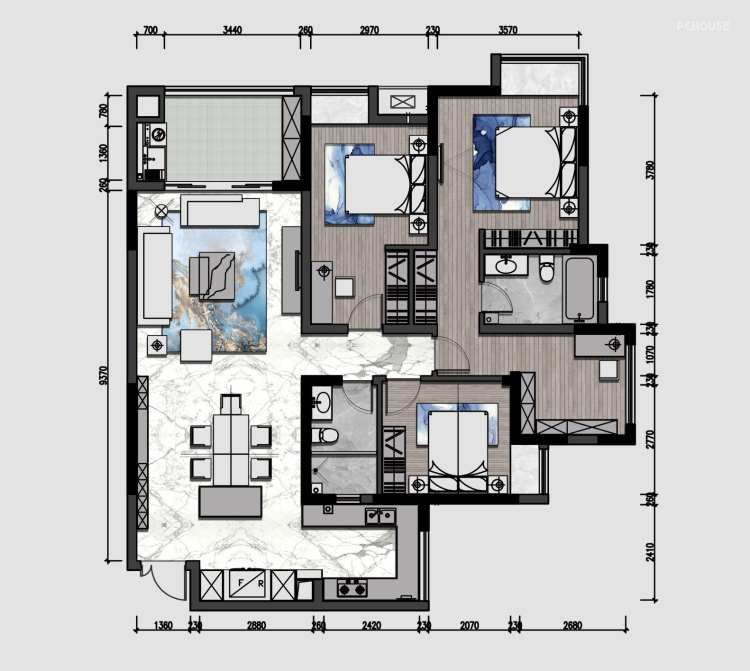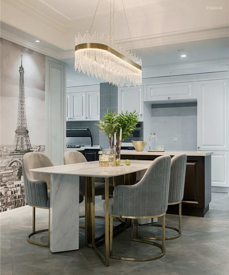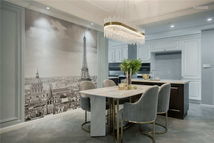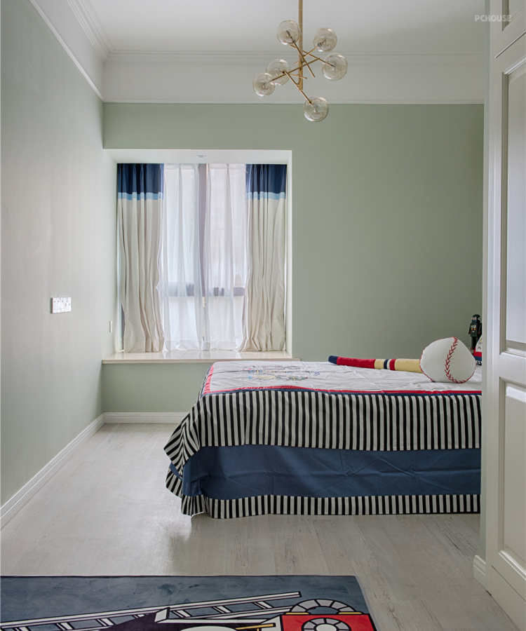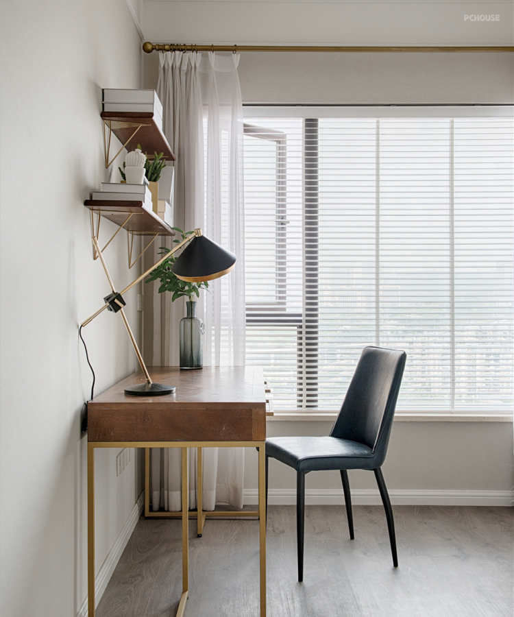 设计师通过开放式厨房布局,不仅增加了空间的通透感,也使房间显得更加美观大气。为了扩大孩子的活动区域,主卧去掉原始的衣帽间,让孩子有了更宽敞的学习、活动、储物的空间。主卧与书房一体化设计,既增加了主卧的使用空间,也使书房更具私密性,同时也让储物空间变得更加富裕。