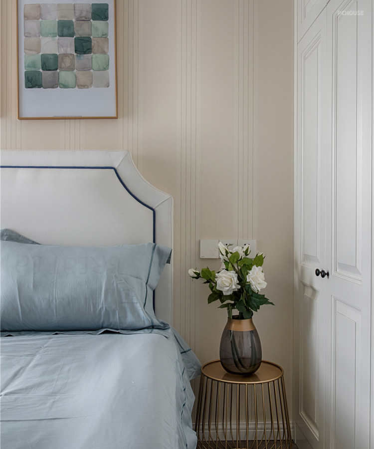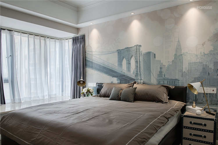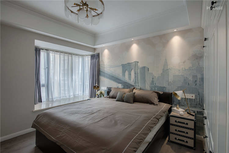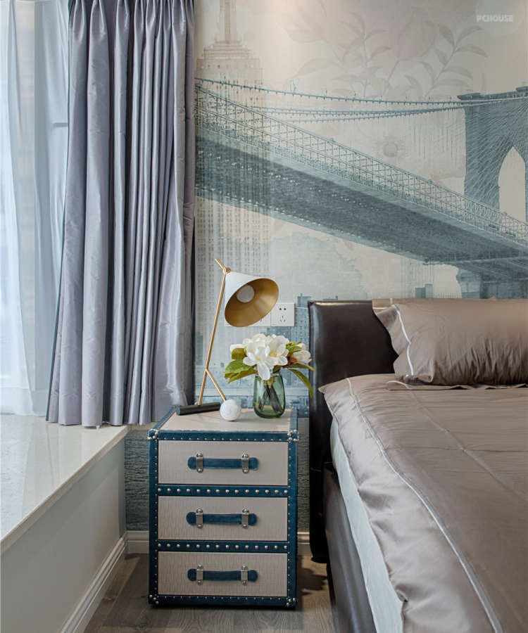 女主人是比较喜欢这种现代感十足,带点轻奢的生活,主人房里面充满了这种元素,无论是壁画家具都有满满的轻奢味道
