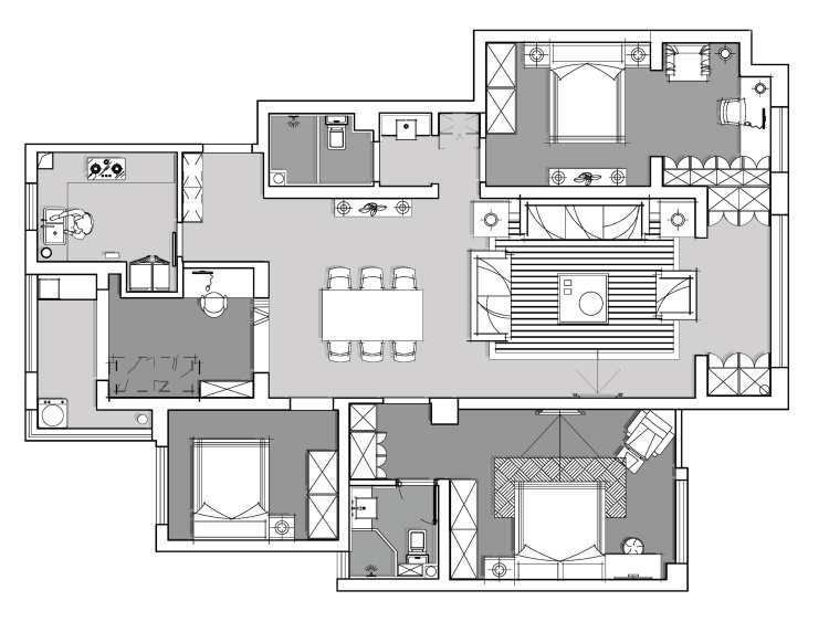 对于本案,设计师以“不做被缚的金鱼,重回本真自我”为出发点,与男业主充分沟通后,从前期的北欧定位调整为更具个人风格的artdeco(装饰艺术)风格。