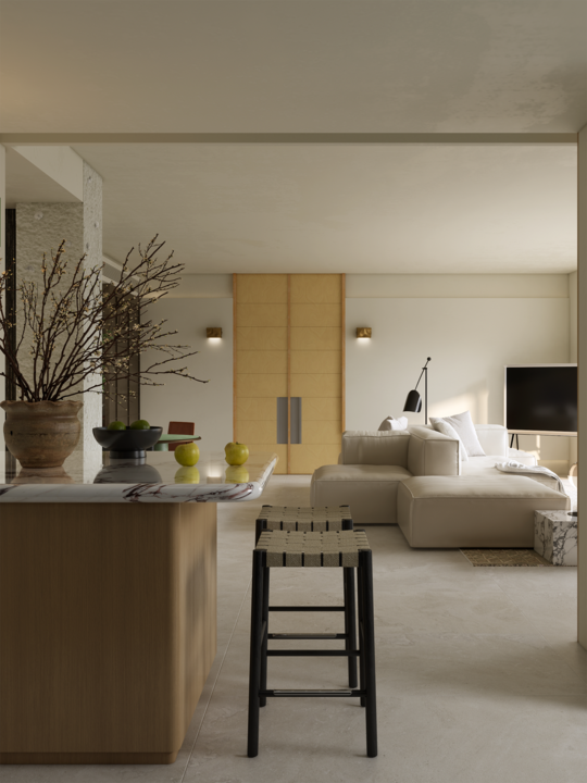 客厅顶面向上聚集的设计,带来恰到好处的视觉延伸。