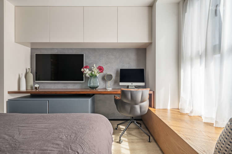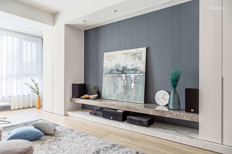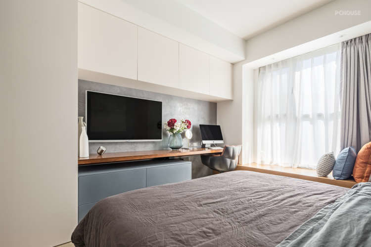 这是主卧电视墙,飘窗台也加宽了一些,可以躺在上面享受阳光