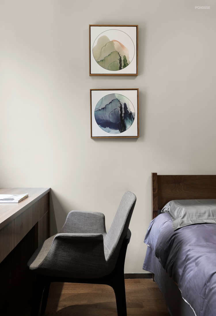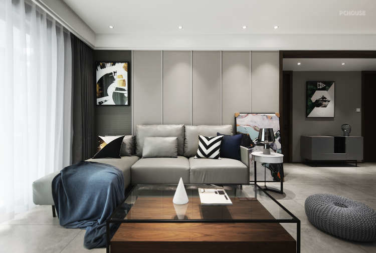在这个空间里,画变成了一首诗,线条会勾勒出最深远的意境来,与沙发、与抱枕、与茶几、与盖毯,与其中种种和谐共处,营造出循序渐进、错落有致的层次感和温馨的生活气息。