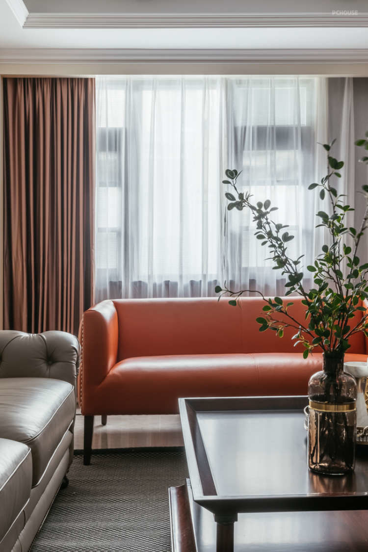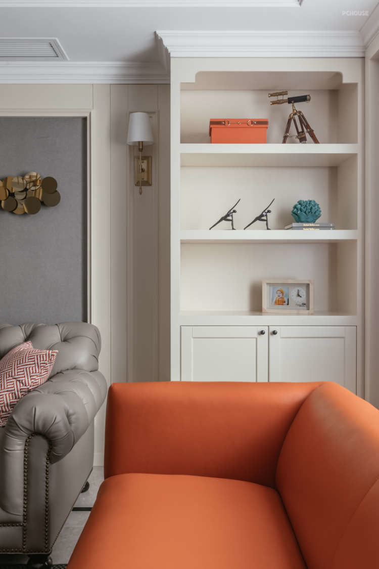 选择了爱马仕橙颜色的沙发点缀整个空间,整个空间的气质瞬间提升即有品质又轻松活跃。