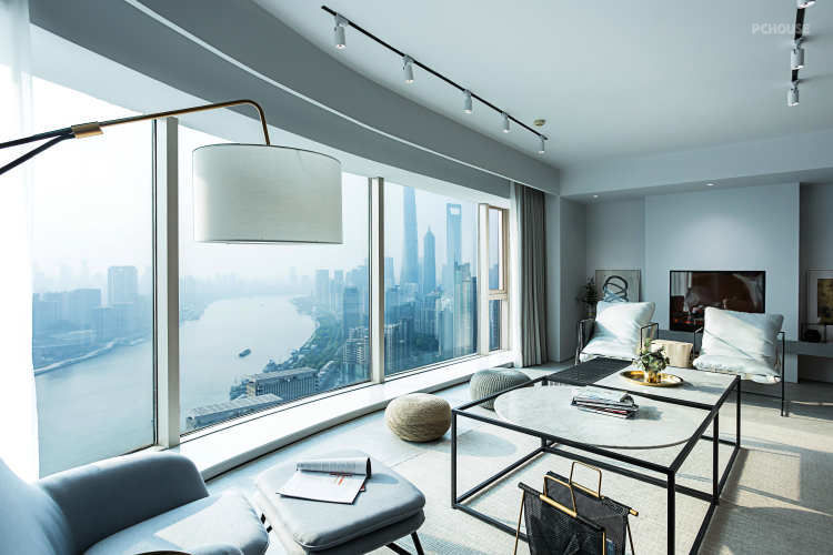 客厅大片的落地玻璃,采光和视野真心无敌.整个S弯的黄浦江都能尽收眼底.