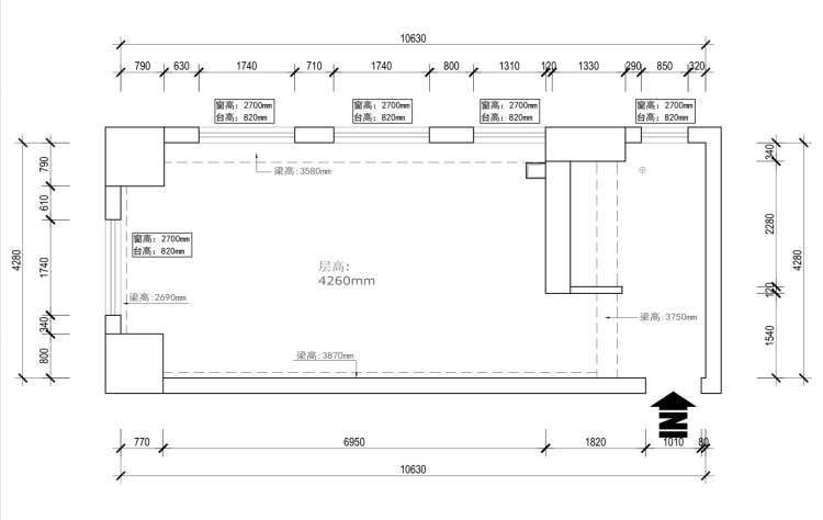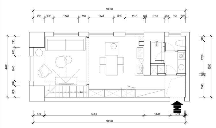 一层布局,卫生间,厨房,餐厅,客厅.进门处做了挑空.卫生间内部层高做到了将近3米.楼上部分当作储藏室,因为有梁,所以上方比较难利用.