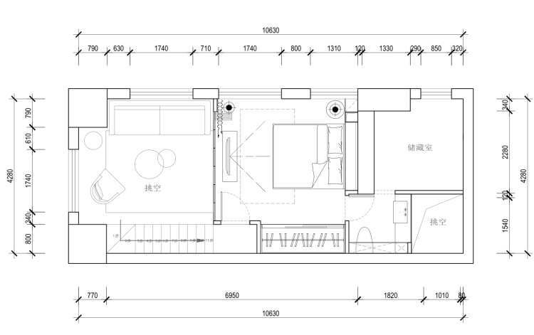 二楼布局,全敞开卧室,卫生间.站在二楼卫生间还可以看到进门挑空处的壁画噢.
