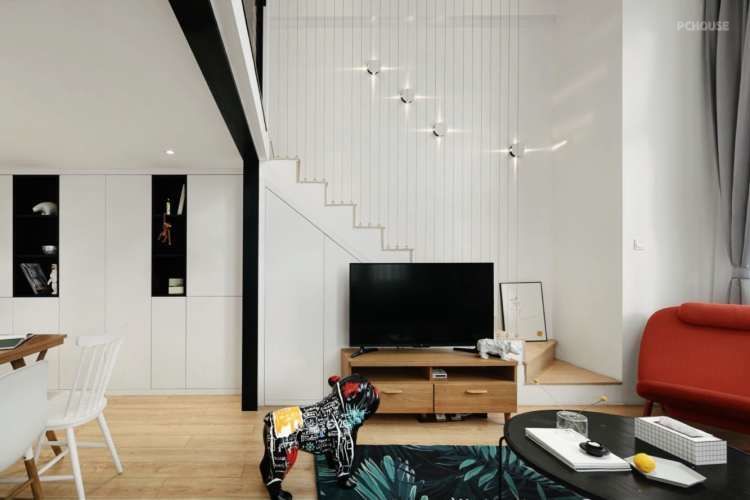 家不大,但是可以装下一个人的梦想,ADAM是我一好朋友.当初也差不多同时段一起买的房子.当然也差不多同时开始装修.整体风格也基本上延续了黑.白.木的物语.清新,北欧,ins风,是这套挑高公寓的主要特色~.