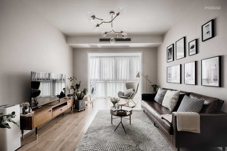 客厅阳台打通,扩大面积,采光更通透,绿植是在北欧风中最常见的元素,它们提升了自然格调和与自然对话的情怀。
