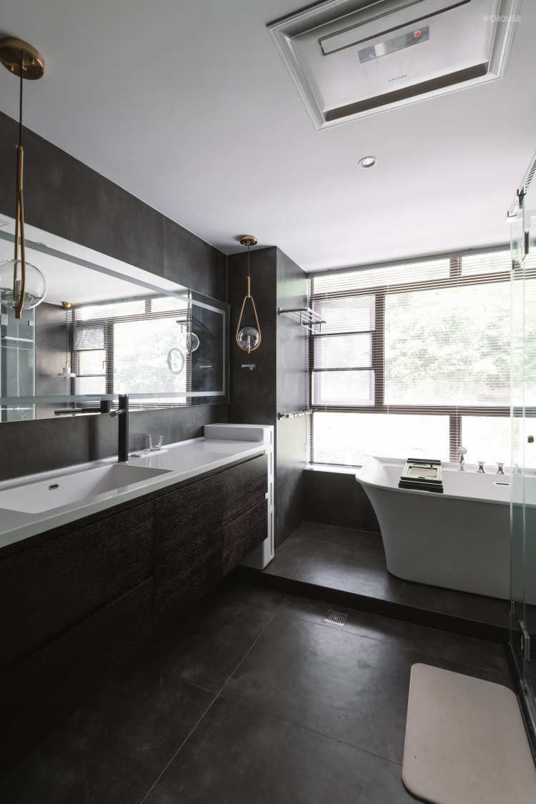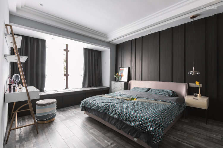 卧室整体还是延续了客厅整体的黑色调,很酷但也温暖。