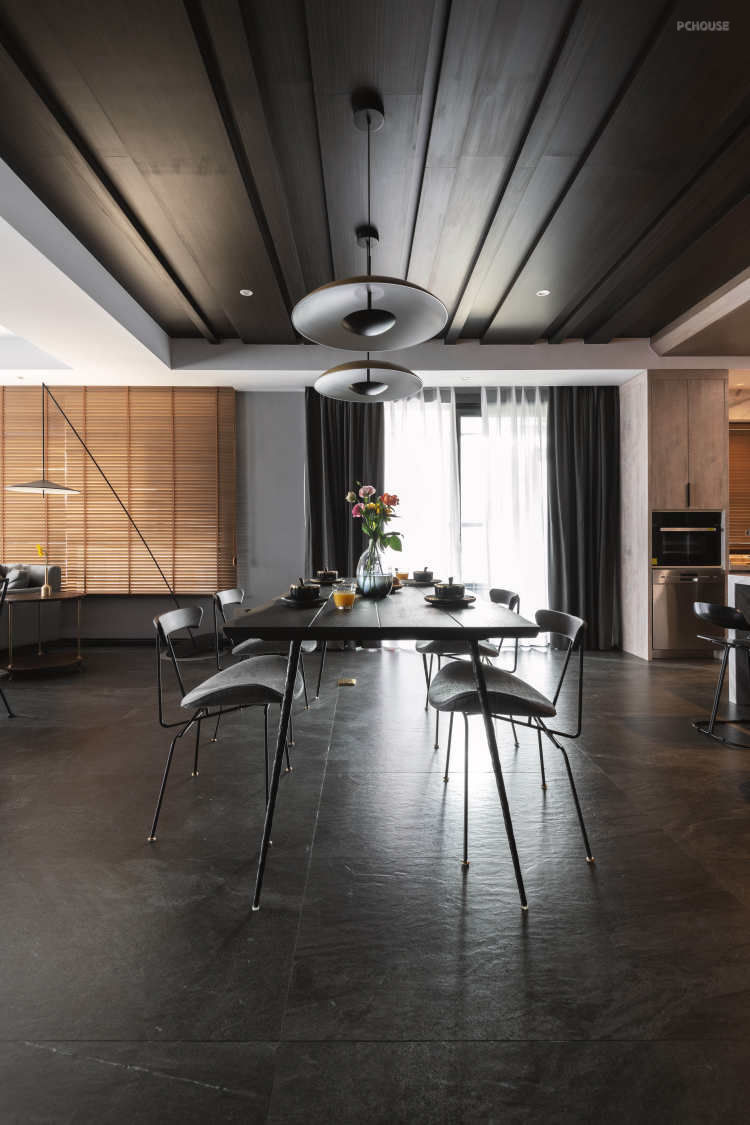 前言: 我这个业主朋友一直给我传达的就是,我喜欢黑色,谁劝都没用,我父母要是来看工地喊改颜色,不要理他们,干就完事了,不然不给钱。其实我想说,深色调的空间逼格满满,很多业主喜欢而不敢尝试,容易被亲戚朋友动摇,坚定自己所喜欢的,坚定的相信我们就完了。