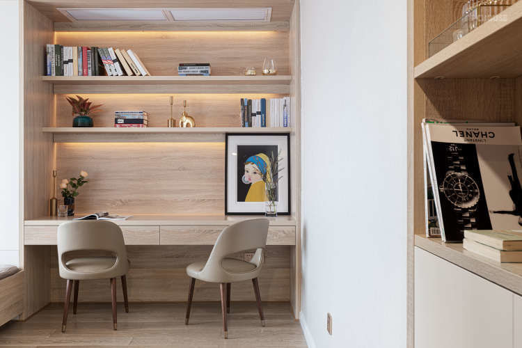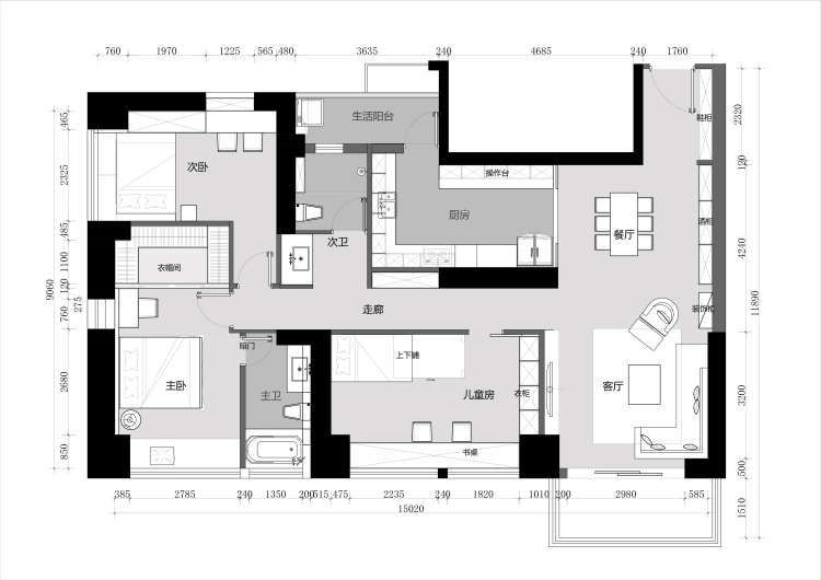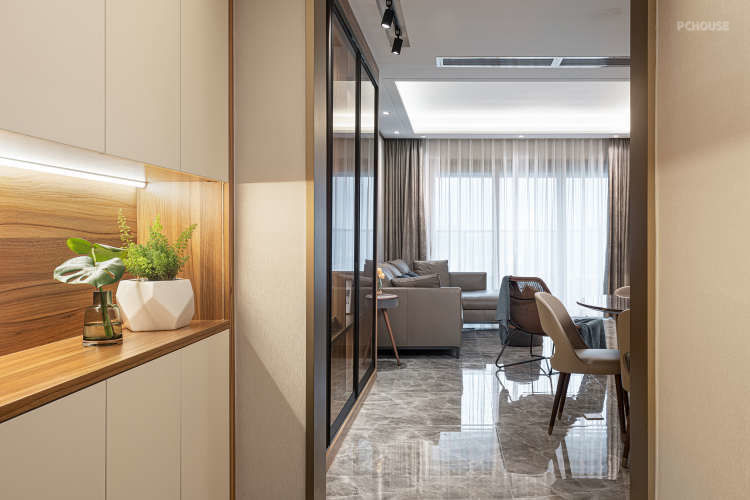 1.对于入户空间重新划分,物业有一段区域属于赠送的过道利用起来作为玄关。是的让空间多了一整面的鞋柜,并且拥有一个比较大的餐厅和大玻璃酒柜,超强的餐边储物功能。2.扩大原来厨房空间,使得厨房具有中厨和西厨概念结合3.生活阳台缩小,满足日常清洁收纳晾晒功能4.卫生间扩大,设置了单独的干区可以内外同时使用,而已淋浴间也不需要做拐角,使用起来更舒适5.将现有的两个小房间打通,给孩子留了一个很大的娱乐空间。