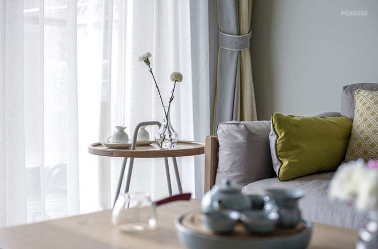 天空灰的地毯配上木色的茶几,平添了一份温暖的格调。