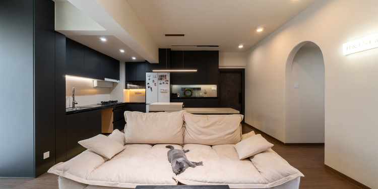 在日常沟通与互动中,设计师发现他们平时喜欢的穿着大多是黑白灰这类简洁的色调与款式,所以以黑白灰这种经典的配色组合来打造这个家,极简而舒适的空间更让人感到自在。设计师认为,虽然在传统刻板印象中,黑白灰是冷调的代名词,但居室的温度由人所营造,不应该仅仅被配色所定义。