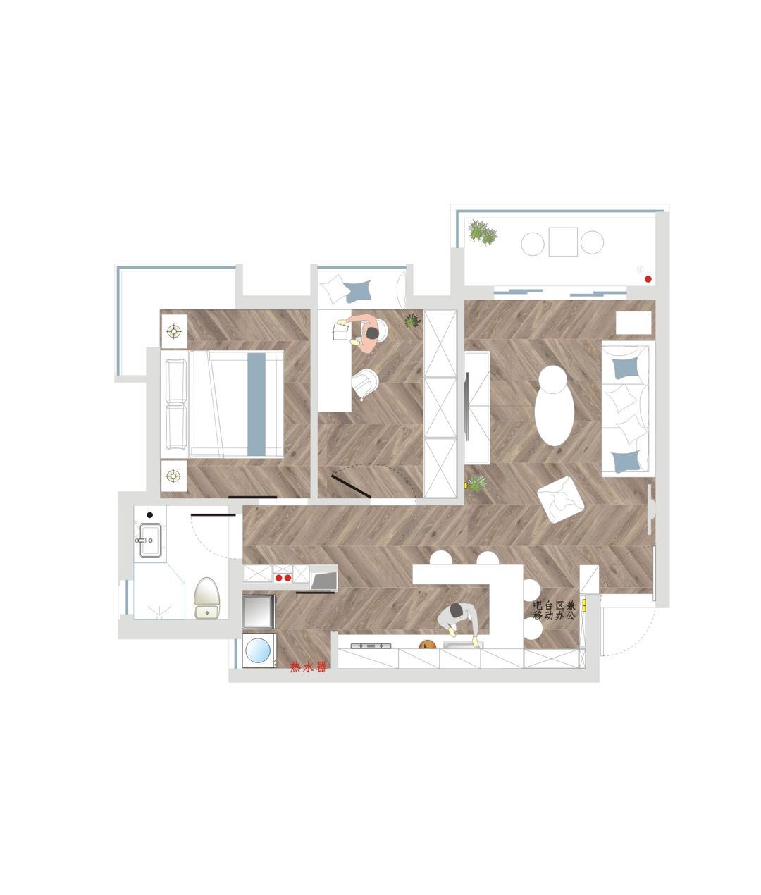 业主喜欢慵懒的生活,日常喜欢品红酒以及烘培,可盐可甜。对于家装风格接受度大且无限制,对细节要求处理细腻,区别于固有小户型装修思维,喜木质自然元素和美式线条;衣服数量较多,需要单独的衣帽间,而卧室空间只用作休息。