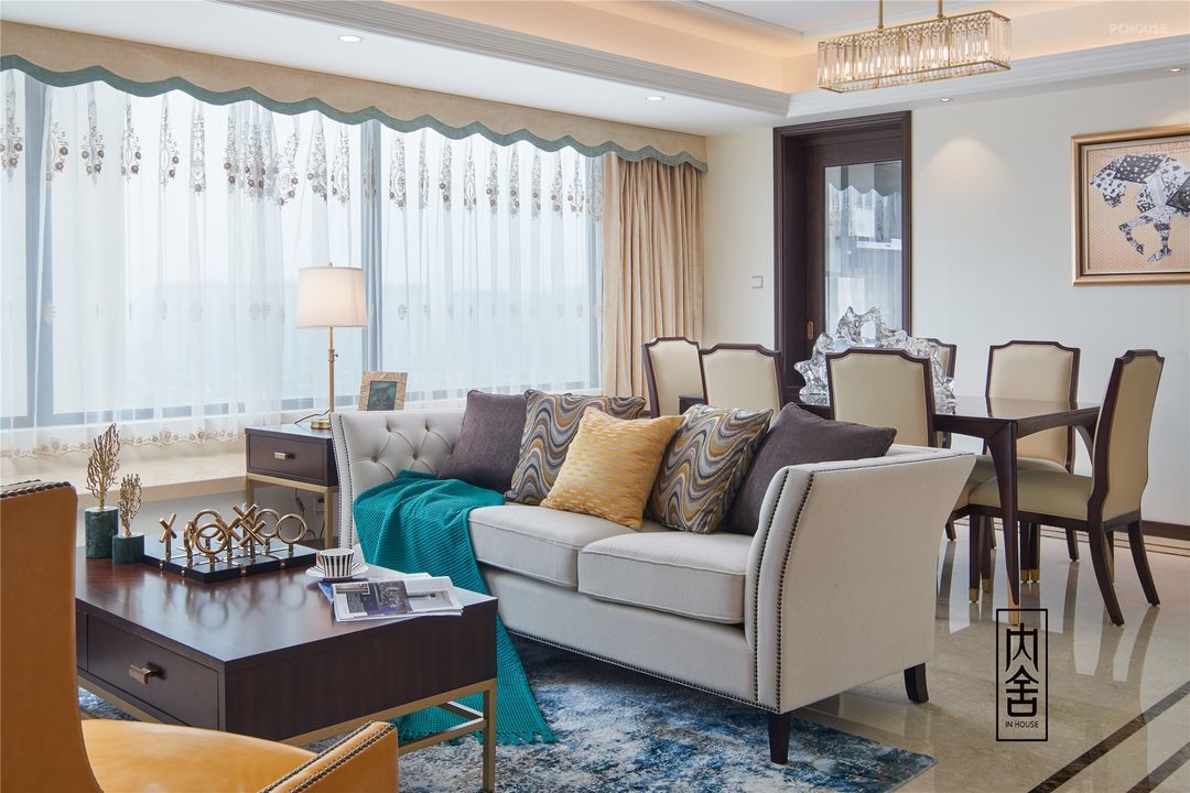 本案以浅色素雅为基调,以亮色点亮空间,将美式的恣意潇洒与轻奢的精致华美相结合,摒弃原有美式复古的繁冗复杂的形式,将美式风的风骨保留,发挥到极致,打造清丽不失格调、经典不乏摩登的温馨居所。
