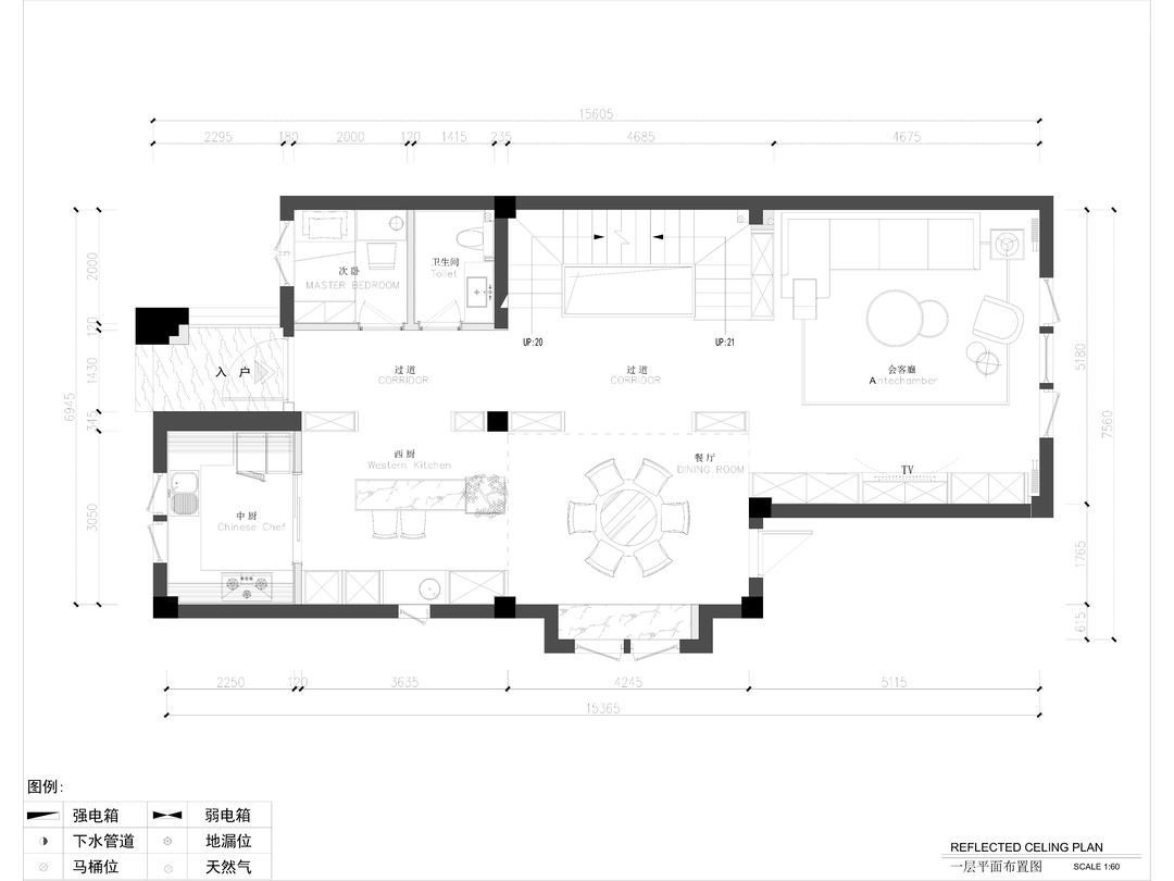一层区域:没有隔墙的状态,用柜子修饰了空间区域划分,空间流畅性,穿插性都更能体现。