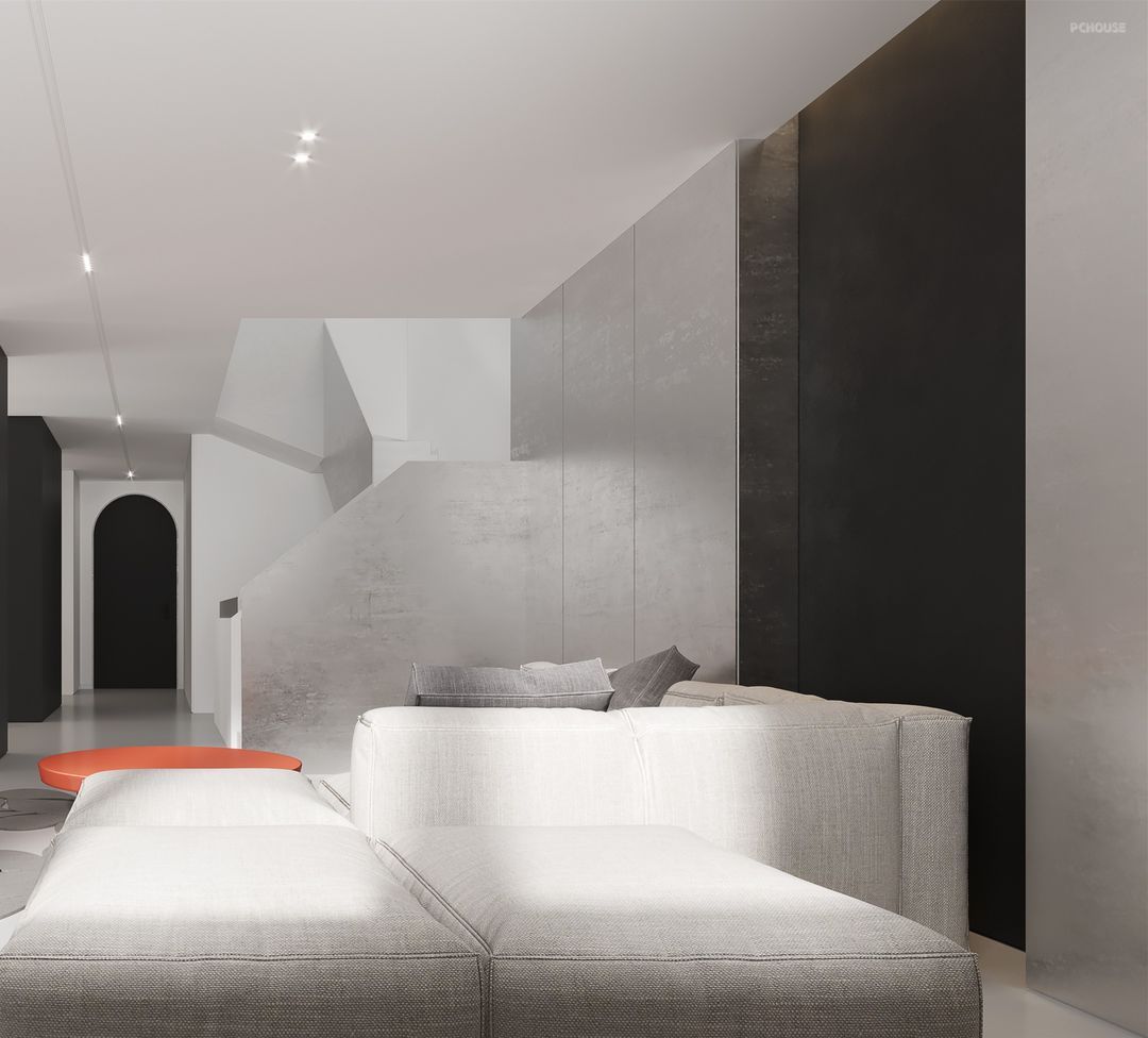 整体空间之中,白色的应用,占用了大部分面积,不过并没有因此失去层次。在自然光、跳跃的茶几和黑色的映衬下,白色散发浓烈的沉静气息,十分抢镜地表达着情绪。
