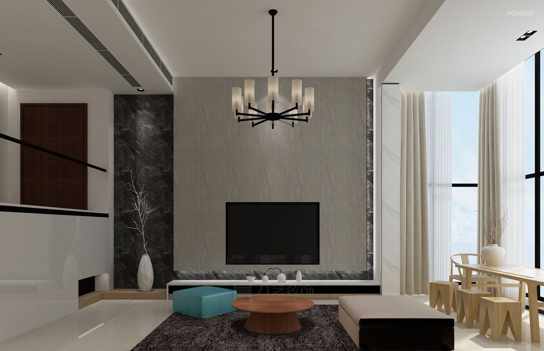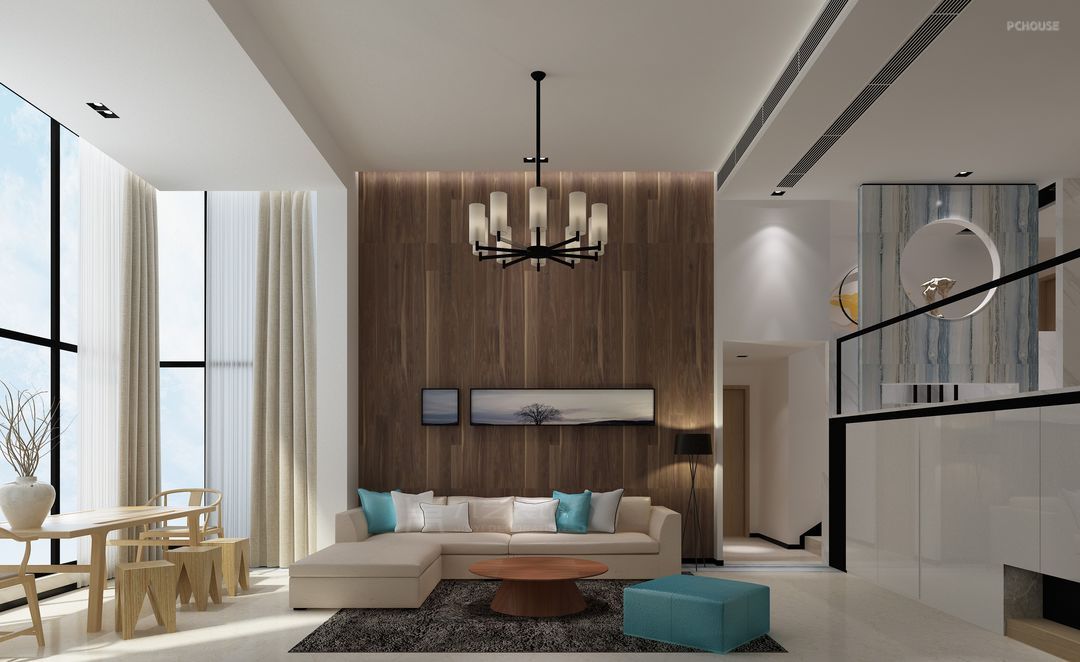 客厅简约不失大气!楼上楼下,层层叠置,空间开阔通透。