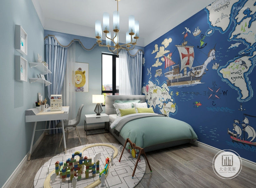 二层为孩子们的卧室,阅读区和娱乐区。女儿的卧室充满公主气息,男孩的卧室则用小男孩喜欢的蓝色作为主色调。阅读区是母亲教导孩子和孩子玩耍的一个活动区域。