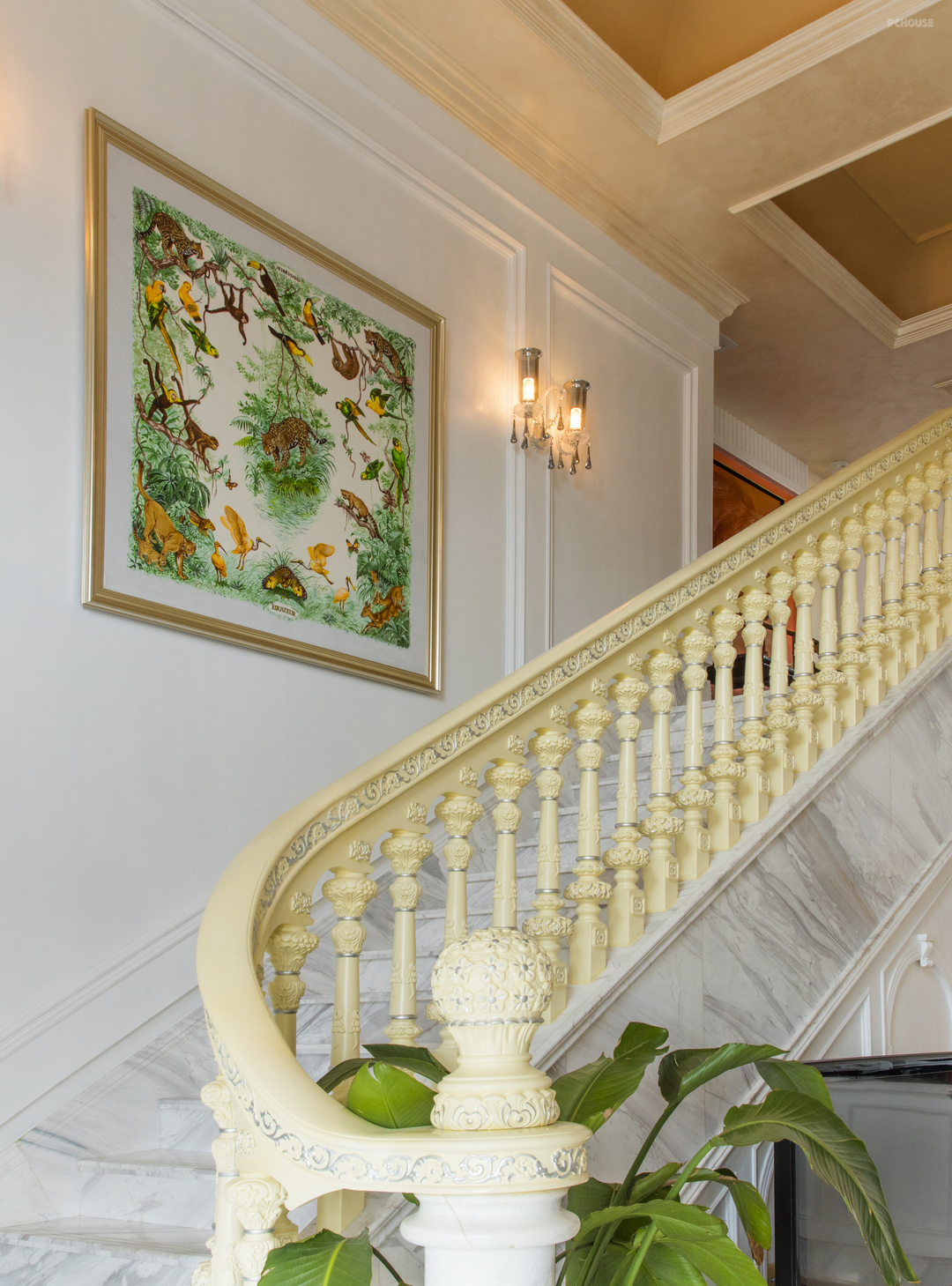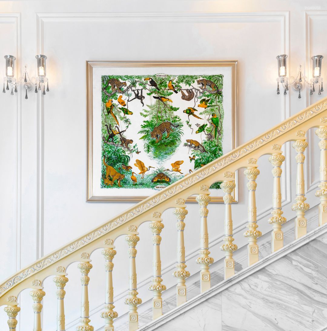 设计师要营造的是一种空间氛围,让居住其中的人有机会发现属于自己的气质。如果可以将所有的器物想象化,Hermès凤凰系列、动物系列等经典图案元素,都将这里幻化为一座神奇奇幻的森林世界,其中所存在的动物都各有寓意。