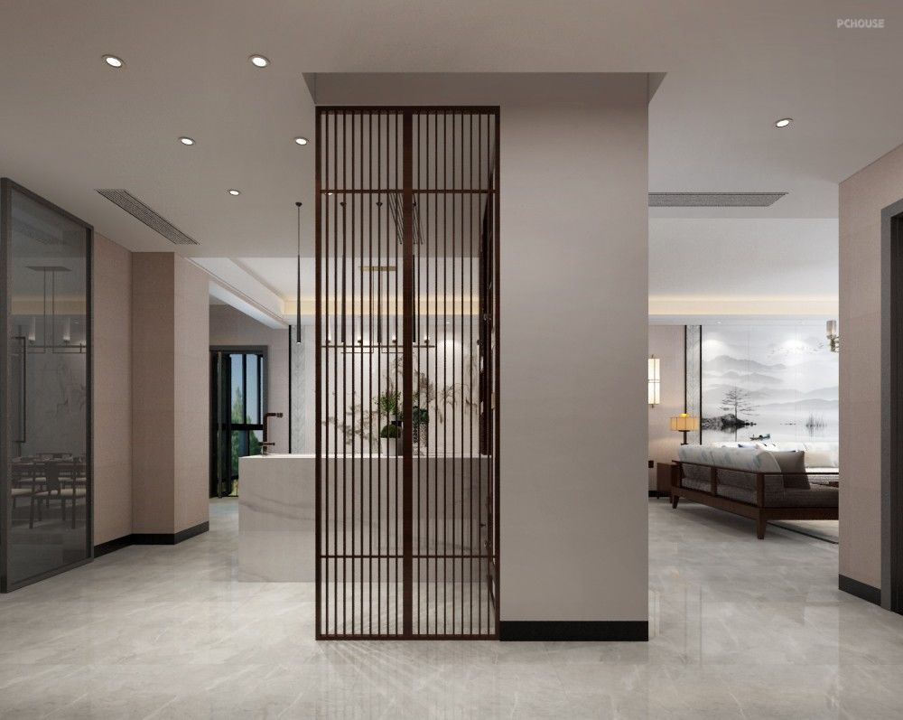 把入户打开之后整个空间变得敞亮大气,跟楼上楼下瞬间不一样了,现在客厅的感觉才有了大宅的感觉,整个空间也活了