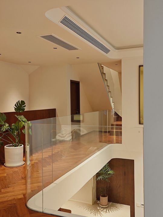 四米多的骨架高度原本足够让这个空间挺拔秀丽,而光线的进入和水系的映射,把空间的可能性又拔高了一些,更灵动,更透彻。