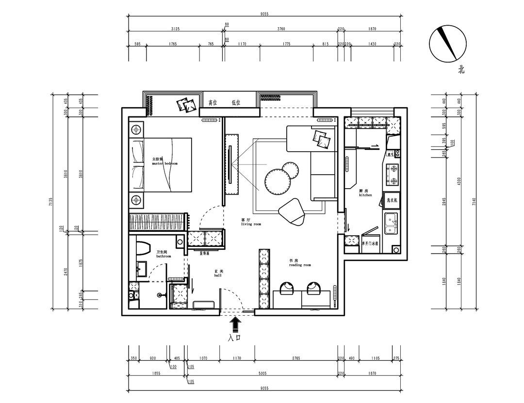 1. 改变卧室的入门方向,避免卧室正对入户门,同时增加了卧室的储物空间