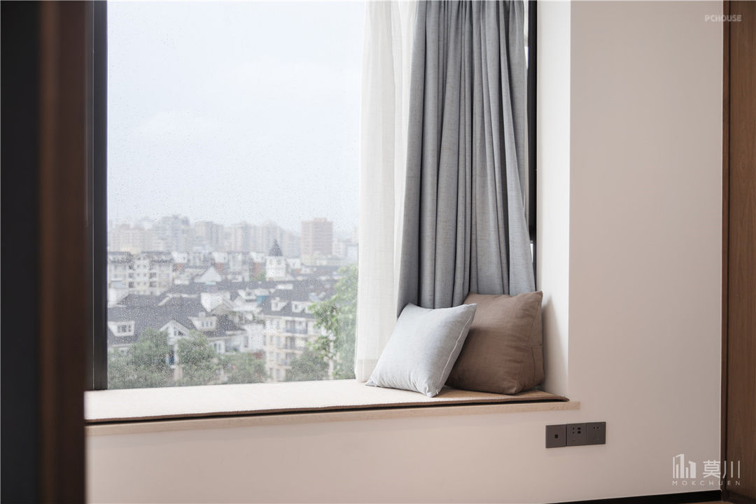 客厅没有采用传统的吊灯,全部使用筒灯与射灯的结合,让空间更富现代感与时尚感。尽可能的保留了落地窗,并将落地窗的边缘做的很窄,黄昏时太阳西下,有一种西雅图的感觉,能让业主重温留学时的回忆。
