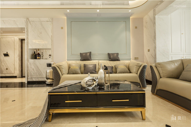 客厅墙面灯槽设计使得空间层次丰富而又不失格调,使得空间主次分而不离