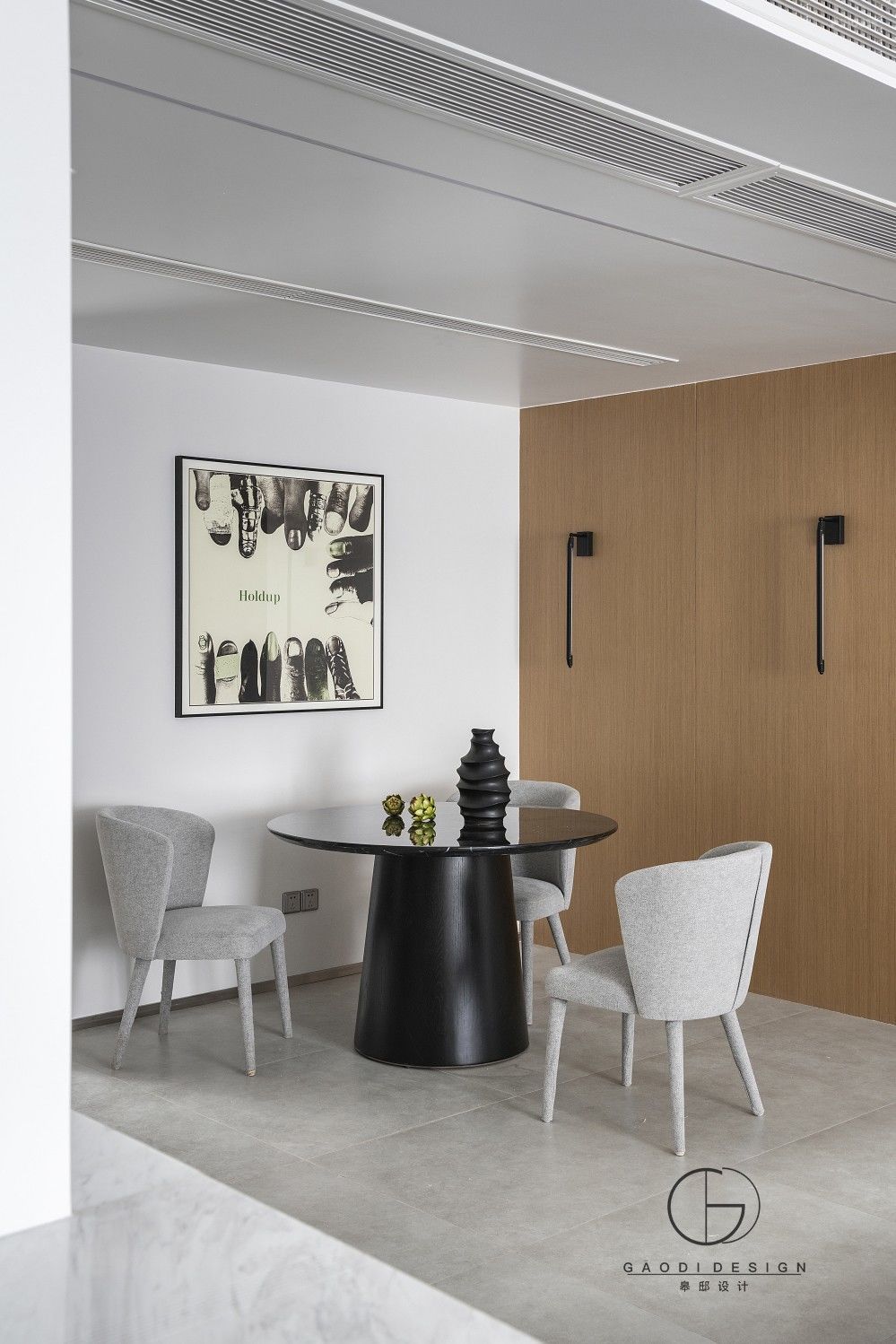 客餐厅,利用嵌入式点光源配合局部氛围光形成多层次光源结构,素色配上木色,让空间柔和,安静却不失冰冷。