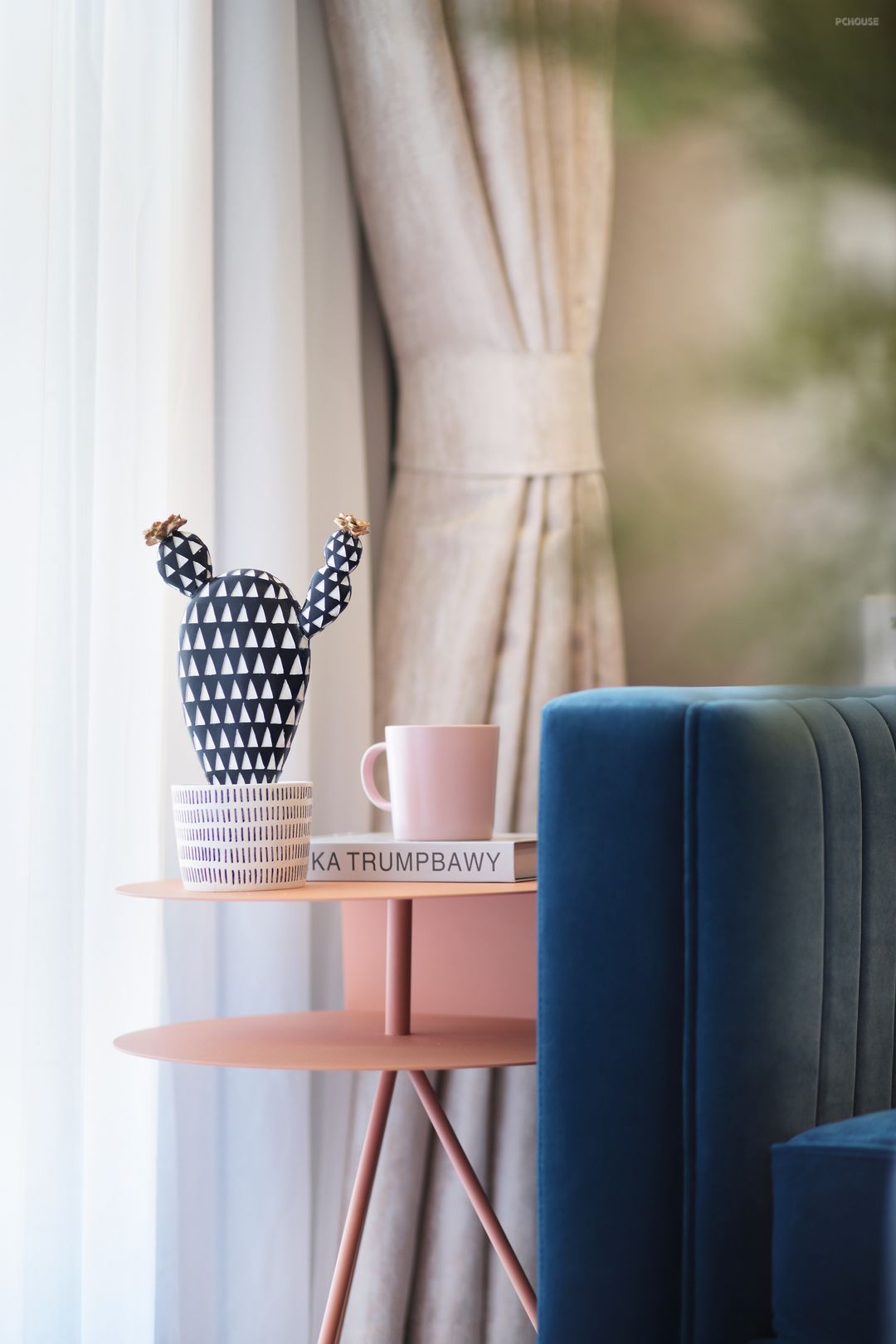 相比西方文化的客厅功能,他们更喜欢沙发配电视的传统组合。每天晚上都会陪女儿看动画片,客厅大胆撞色是他们所向往的无拘无束,这个可能跟他们的工作有关。