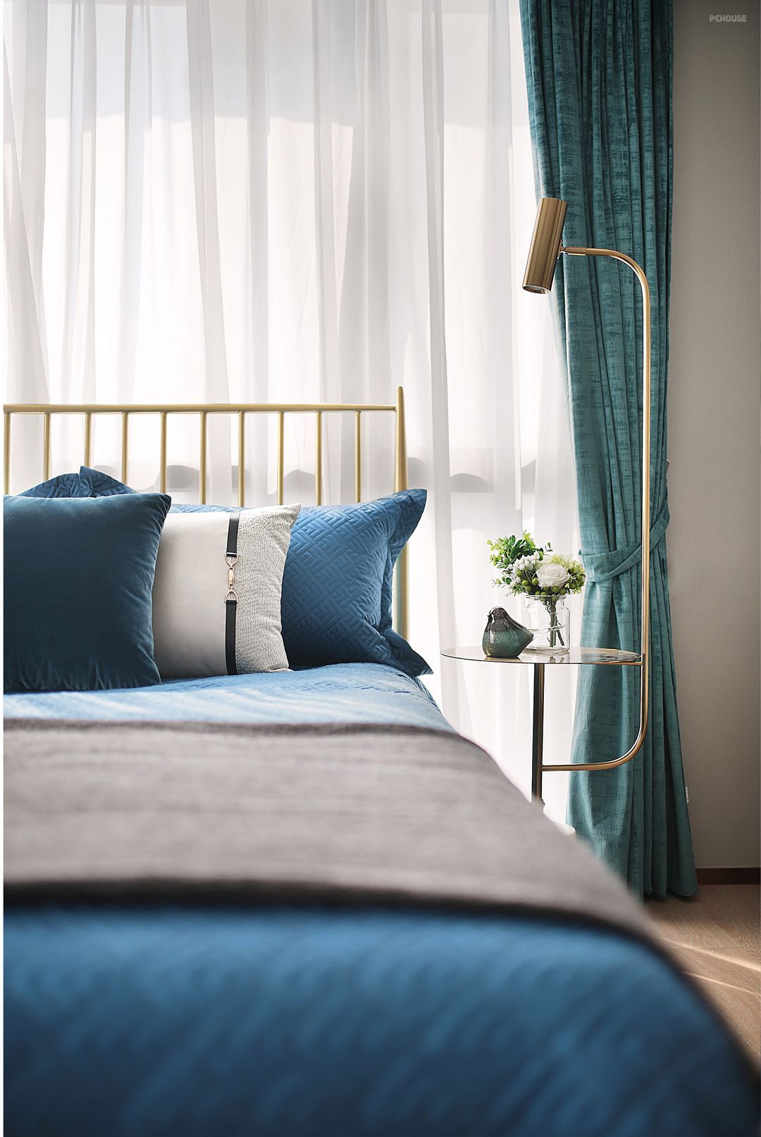 两面落地窗,柔和的光晕透过纱帘,自然垂落;安静、舒适中带着和谐。吊灯的线条结合衣柜的符号打破了整个空间的寂静,挂画给整个空间带来着温馨的笑容,精心准备的小小花艺,一看就是好客的主,可以给客人一个好的休息空间。