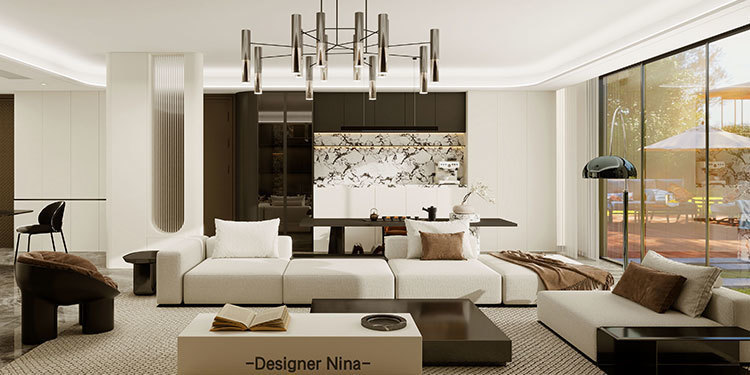 ▲造型灵动的灯具、沙发、茶几,巧妙的化解深色的沉重,更显时髦。
