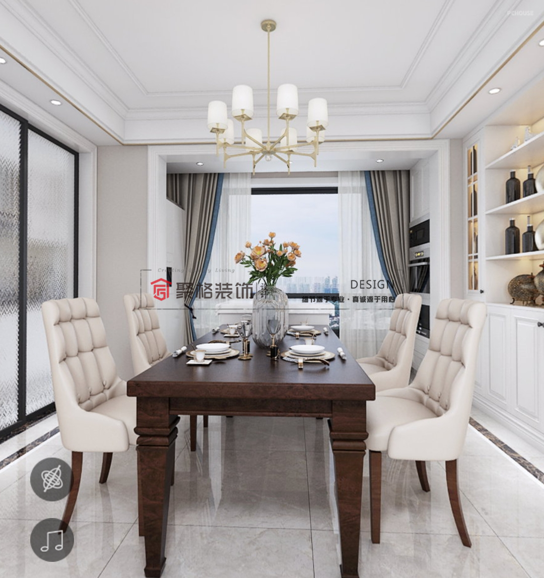 前言: 生活所需的一切,不在于豪华,在于简洁。对于空间设计而言,空间的整体基调与气质的体现,代表了对美学的认知。白色作为中简洁大气的经典色,为整个空间在基底上做了很好的映衬。果绿色让空间又多了一些清新与安静。开放式的厨房,客餐厅,让空间在整体中划一,是空间更加饱满,又在分散中各自独立,动静结合赋予空间一种灵动性。弧形墙面,柜体等弧形元素的运用,使得空间更添几分柔性,与可塑性,各自呼应,增加空间的温馨成都。沙发家具的搭配,让空间色彩丰富起来,通过色彩,材质,灯光,线条等家具元素的结合,使得空间在于人的互动时也多了几分美感,又节有度的餐台摆放,让空间在有序中,体现生活的质感。