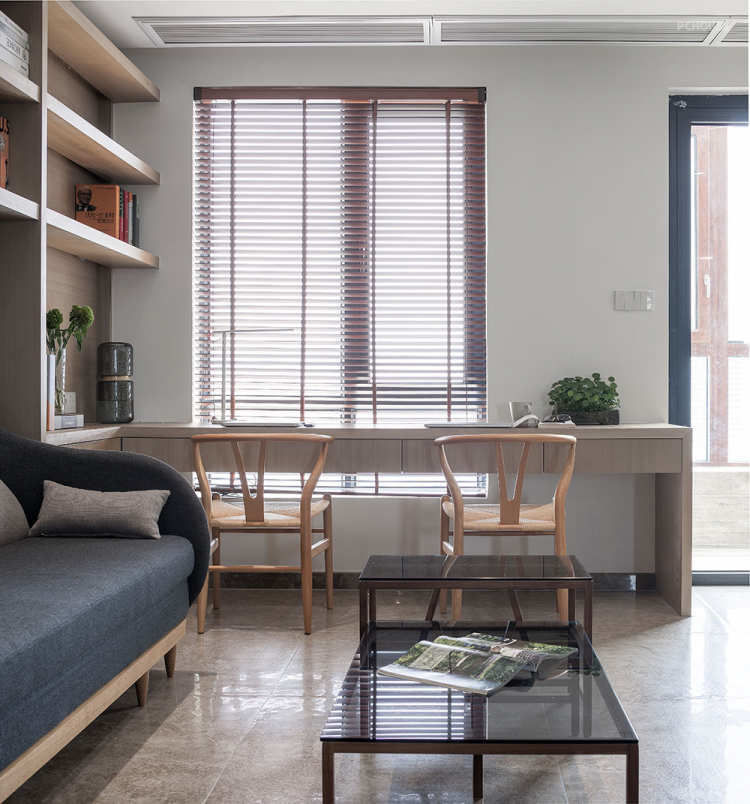 客厅及三个房间靠窗位置都设立了书桌,满足家人阅读、工作、做手工的需求。