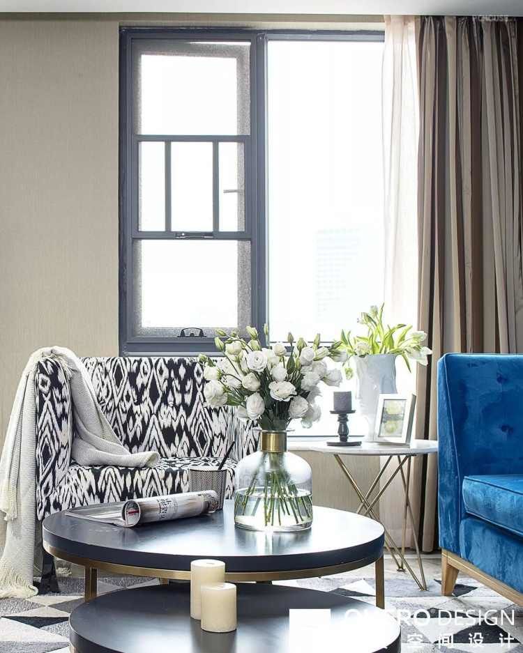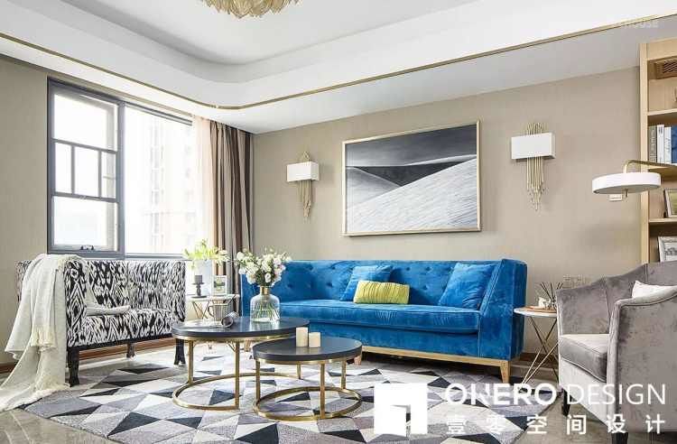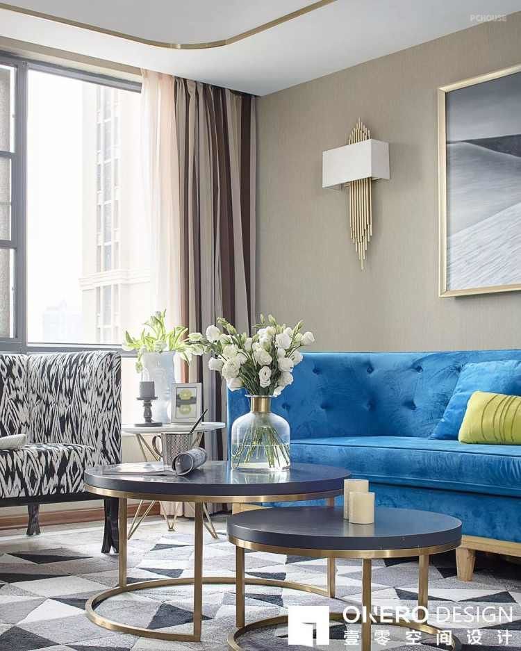特意选择一抹亮色沙发起到了提亮整体空间的重要作用,款型上也特意挑选的现代与复古元素相融合,与整体风格定位保持一致。